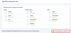 - Download the OpenVPN configuration file(s) following this link.