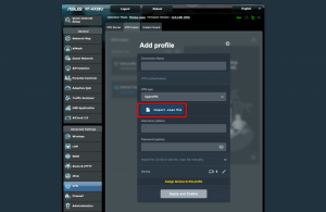 Once you have downloaded the files, go back to the control panel of your router and click Choose File in the “Import .ovpn file” section
