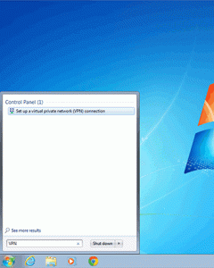 Click ‘Start’ and type ‘VPN’ into the search field. Click on ‘Set up a virtual private network (VPN) connection’.