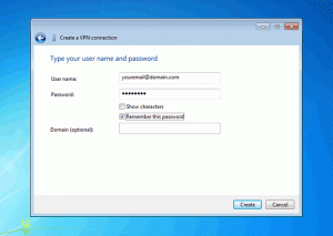 Check ‘Remember this password’ for the computer to remember your login details. Click ‘Create’ to continue.