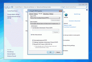 Select the ‘Security’ tab to proceed. Under ‘Type of VPN’ select ‘Point to Point Tunneling Protocol (PPTP)’, under ‘Data encryption’ select ‘No encryption allowed…’ and under ‘Allow these protocols’ make sure only the ‘Unencrypted password (PAP)’ box is checked.