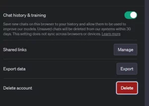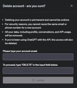 Disclaimer! Deleting your OpenAI account is permanent and you won’t be able to retrieve the account or any interactions with ChatGPT upon deleting it. Also, you cannot reuse the same email for creating a new account. Prior to getting rid of your account, make sure you have saved all the information or chat logs you’ve had in ChatGPT or DALL E.