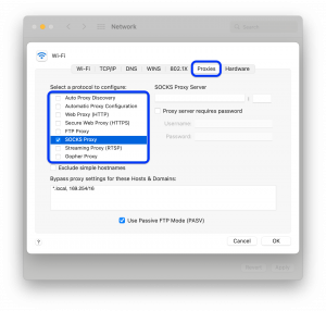 4. Next, as shown in the screenshot below, select Proxy in the top row and go to the SOCKS Proxy section.