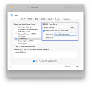 Instructions on how to set up a proxy from ZoogVPN on MacOS: