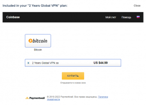 Если Вы храните Ваши деньги в криптовалюте, Вы также можете их использовать для покупки VPN в России. Для этого после выбора необходимого плана выберите Bitcoin как метод Вашего платежа.