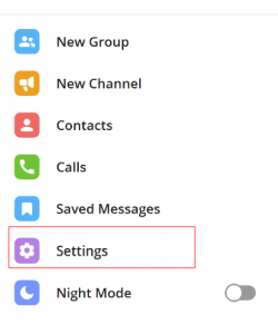 1. Перейдите в настройки Telegram