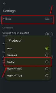Что касается приложения версии 3.4 и новее – в настройках приложения можно выбрать VPN протокол Shadow, который работает также, как и функция ‘ZoogShadowing’.