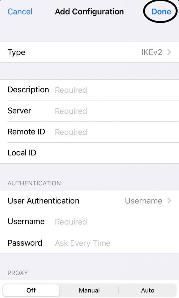 Шаг 5. Введите данные, которые предоставляет ваш VPN провайдер и нажмите “Готово”.