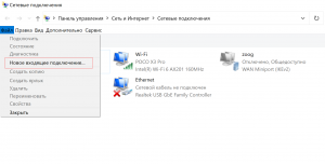 7. Для подключения к созданной сети, откройте на удаленном компьютере “Центр управления сетями” и нажмите на “Создание и настройка нового подключения..”