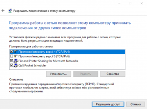 6. Оставьте выбранные по умолчанию протоколы и нажмите “Разрешить доступ” и “Закрыть”