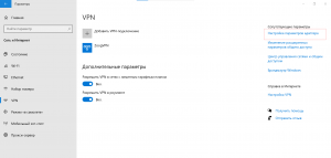 6. Вернитесь на страницу VPN подключений и нажмите на “Настройка параметров адаптера”