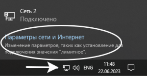 1. Нажмите на значок сети на панели внизу справа и перейдите по выделенной строке “Параметры сети и Интернет”.