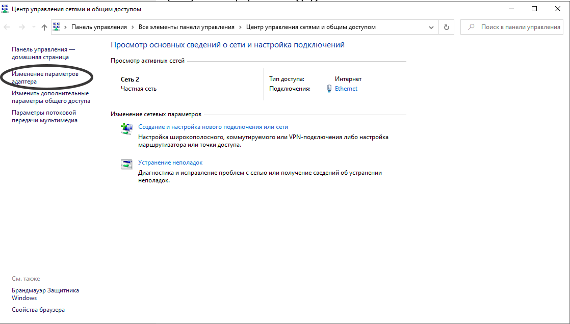 3. Далее перейдите в окно “Изменение параметров адаптера”.