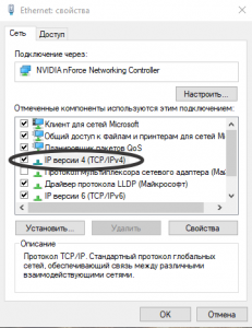 6. В открывшемся списке переходим по строке “IP версии 4 (TCP/IPv4)”.