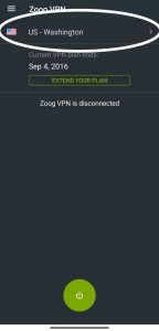 5. После автоматического входа в систему, выберите сервер ZoogVPN, находящийся в стране, где доступен Seasonvar. Изменить сервер вы можете с помощью указаний стрелки на скриншоте ниже.