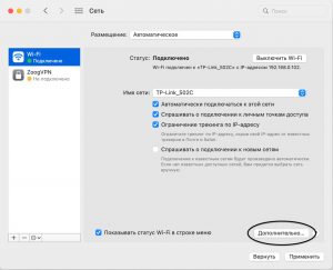 2. В настройках сети нажмите на кнопку “Дополнительно”.
