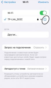 2. В строке, где указан Wi-Fi, который вы используете нажмите на выделенный значок, как указано на скриншоте.