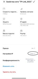 3. В пункте Настройки IP нажимаете, как указано на скриншоте ниже и выберите “Статический IP-адрес”.